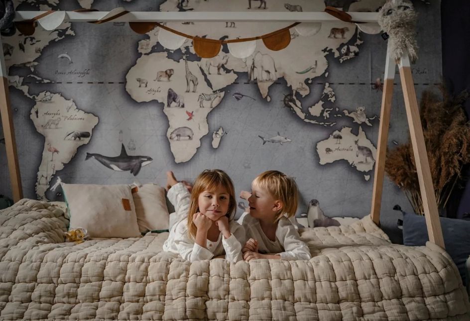 Tapet dla nastolatków nie trzeba traktować wyłącznie jako tła. Odpowiedniej tapety użyj jako świadomego narzędzia budowania charakteru wnętrza, tak aby pokój dla nastolatka był jednocześnie praktyczny i pełen charakteru. Wybór tapety do pokoju młodzieżowego może też łączyć elementy dziecięcy sentymentów z dorosłym stylem, na przykład poprzez połączenie nowoczesne tapety o prostym wzorze z jedną ścianą ozdobioną dynamiczną tapetą, taką jak „BIKE ROAD - tapeta do pokoju dla chłopca z rowerami górskimi” lub edukacyjna „MAPS - dark blue - tapeta mapa świata do pokoju dziecięcego”.