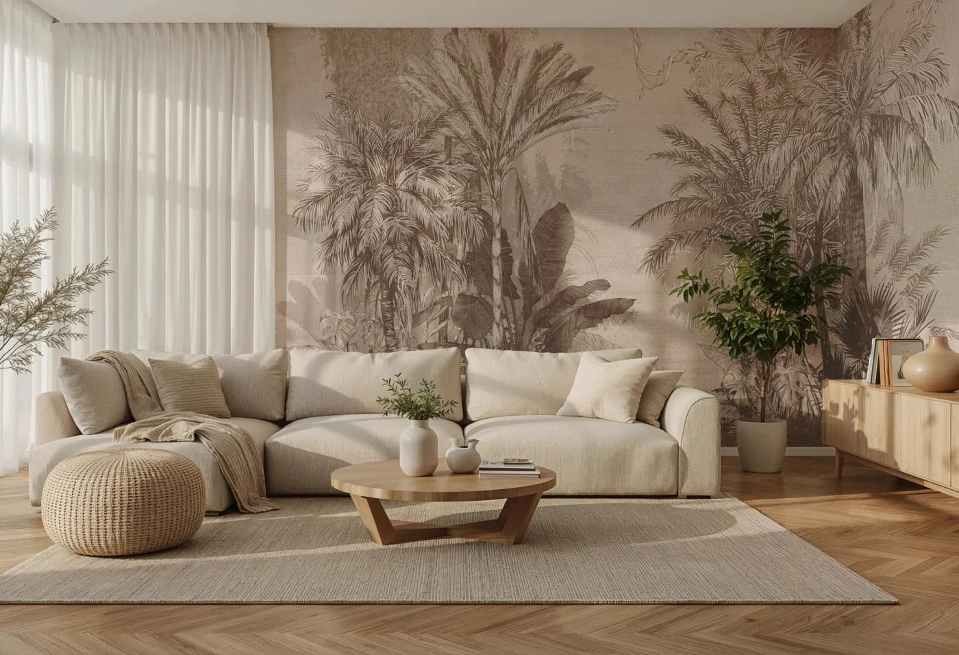 Tapeta do salonu z motywem palm w odcieniach brązu - odkryj nowe możliwości aranżacji