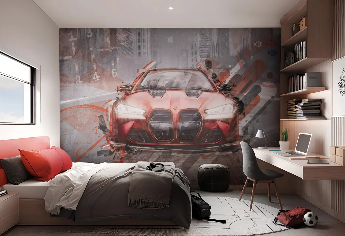 Postaw na tapetę dla nastolatków z autem i wspólnie bawcie się designem. Znakomicie prezentuje się w towarzystwie monochromatycznych mebli, ale równie wiele potencjału wykaże w duecie z kolorowymi dodatkami.