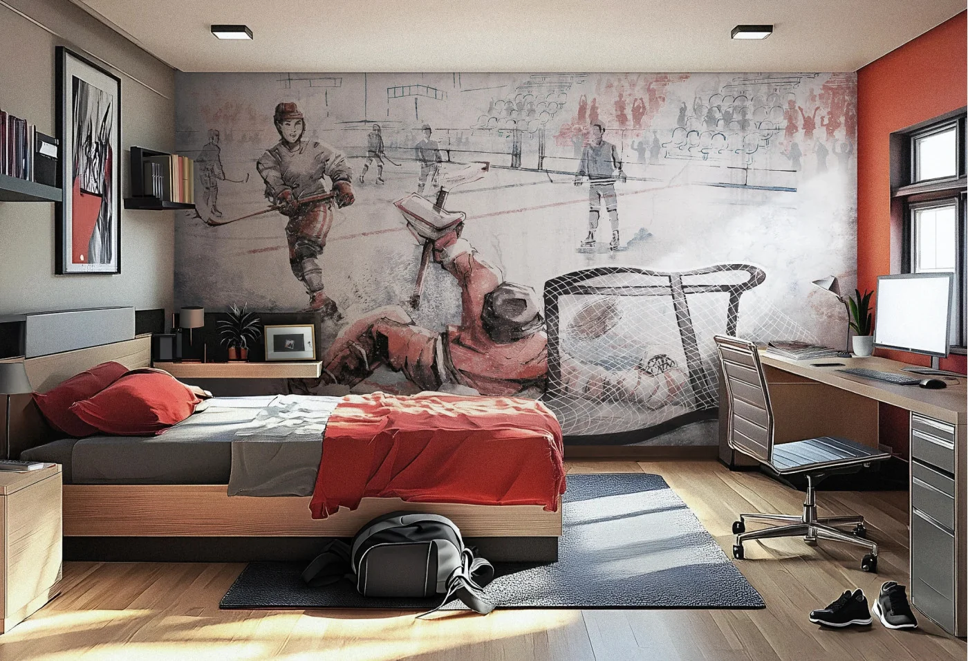 HOCKEY - red-- tapeta z motywem hokeja do pokoju nastolatka