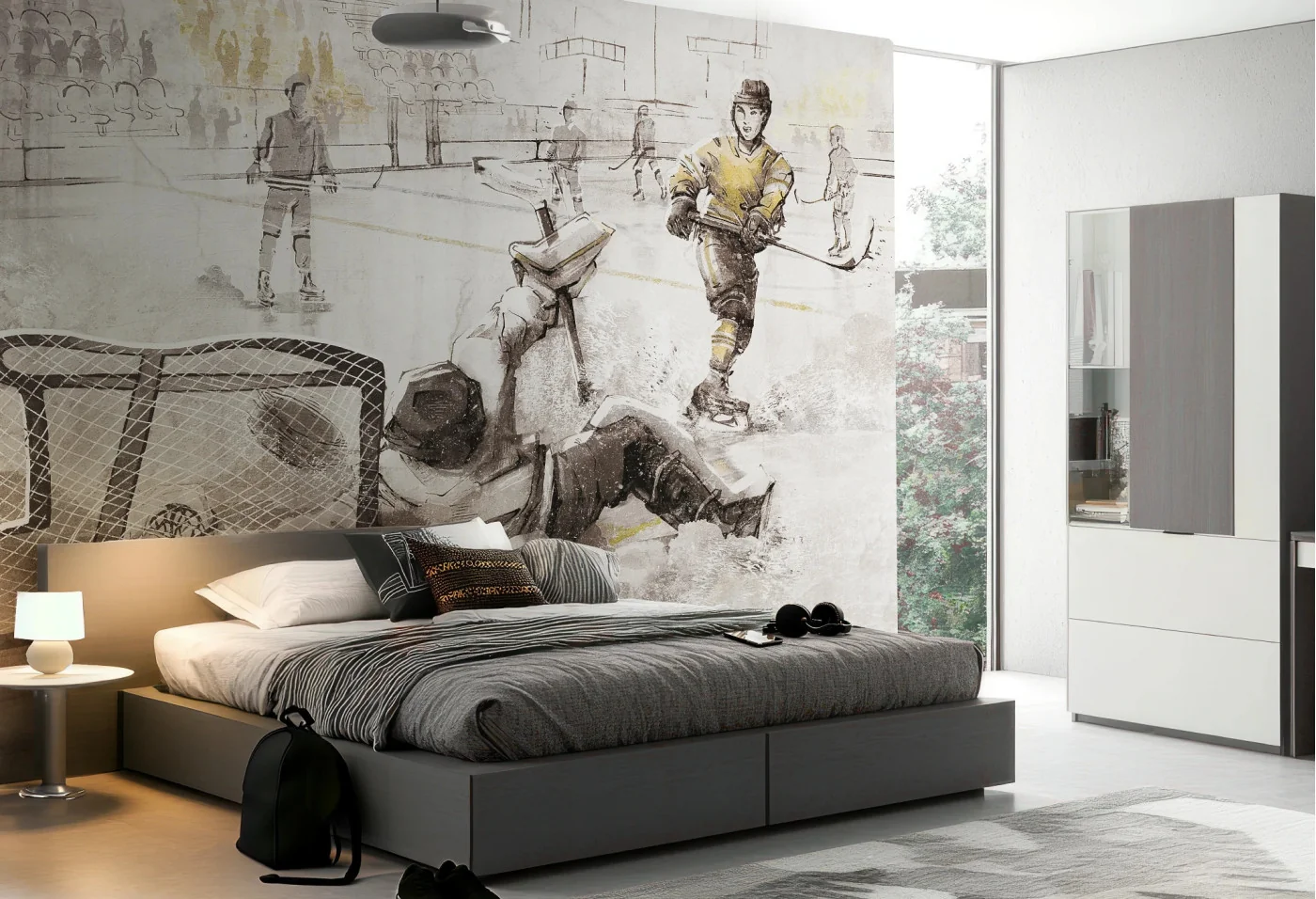 Tapeta do pokoju młodzieżowego w kolorze żółtym - pasja, dobra energia, radość z hokeja